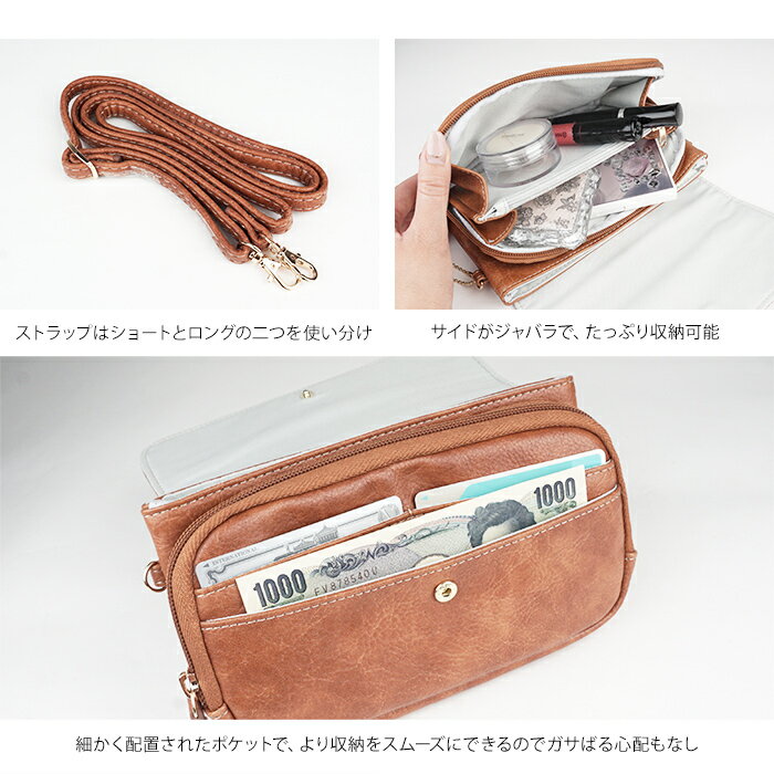 サイズ W21cm×H12cm×D4.5cm 付属品 ストラップ/14cm ショルダー/67ー127.5cm 重さ 約216g 素材 外側:合成皮革 内側:コットン 生産国 中国 カラー キャメル、ネイビー、ワイン、ベージュ 仕様 カードポケット×8 メインポケット×3 小銭ポケット×1 フロントポケット×1 その他ポケット×2 ストラップ×2 キーホルダー×1 ご注文時に以下の内容を必ずご確認ください ※当店の定休日は日曜日となっております。